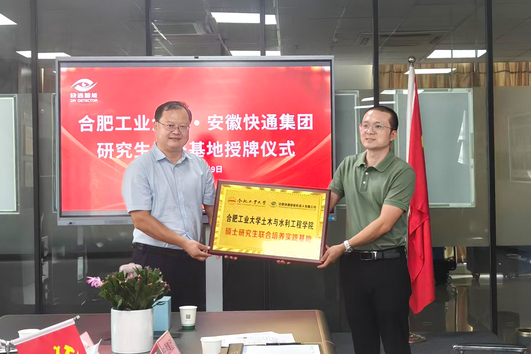 近日,"合肥工业大学·安徽快通集团研究生培养基地"揭牌仪式在安徽快通智能机器人有限公司隆重举行。